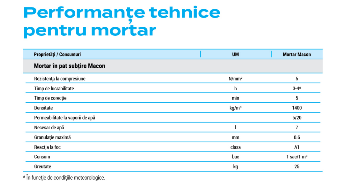 Mortar adeziv, special conceput pentru zidirea blocurilor de zidărie Macon Smart Standard în strat subțire (1-3 mm).